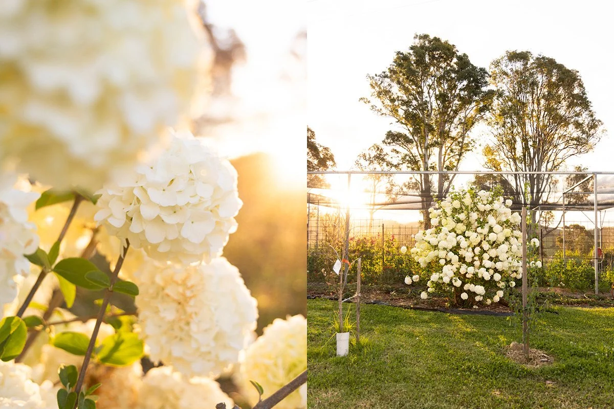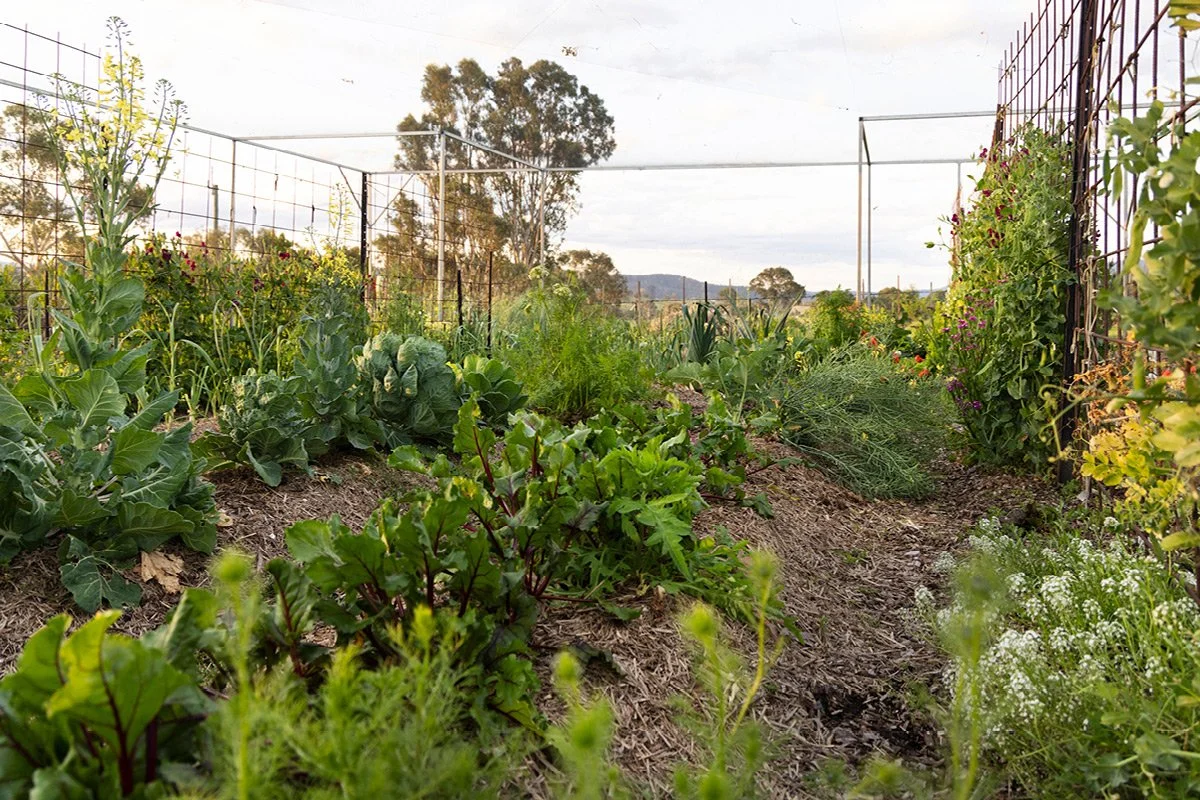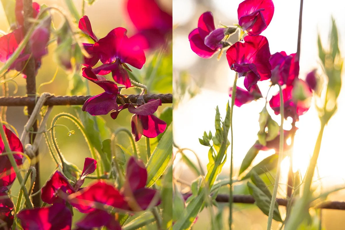 This week I spent an afternoon photographing in the orchard and veggie garden. On the edge of the enclosure, the Snowball Tree (Viburnum) is putting on its full display, a cloud of white that always reminds me of a soft wedding dress. Inside, there’s a layering of seasons happening all at once: autumn brassicas still holding on, while spring’s snow peas and sweet peas curl upwards. Beetroot, silver beet, kale, and parsley fill the beds, and underneath, a tangle of flowers spills colour and scent across the paths.